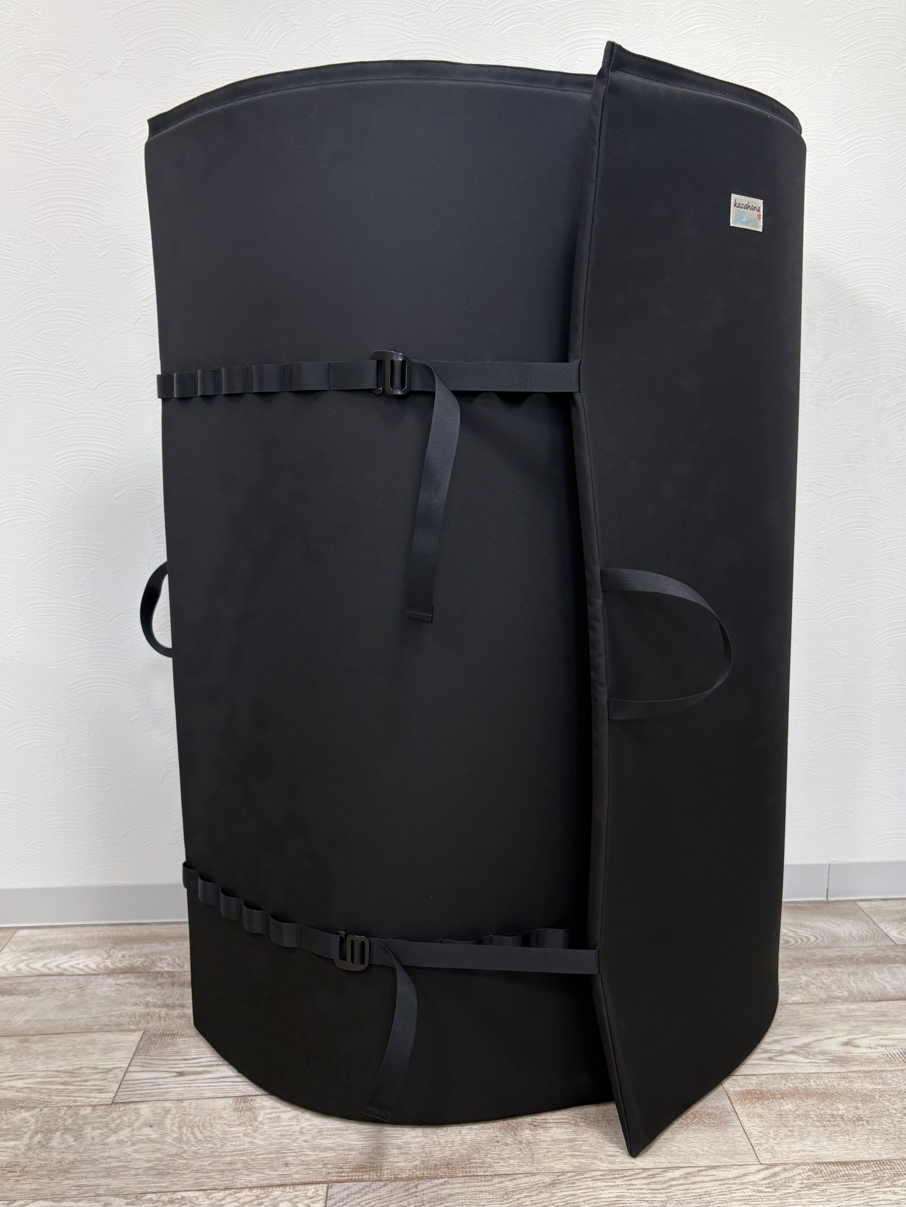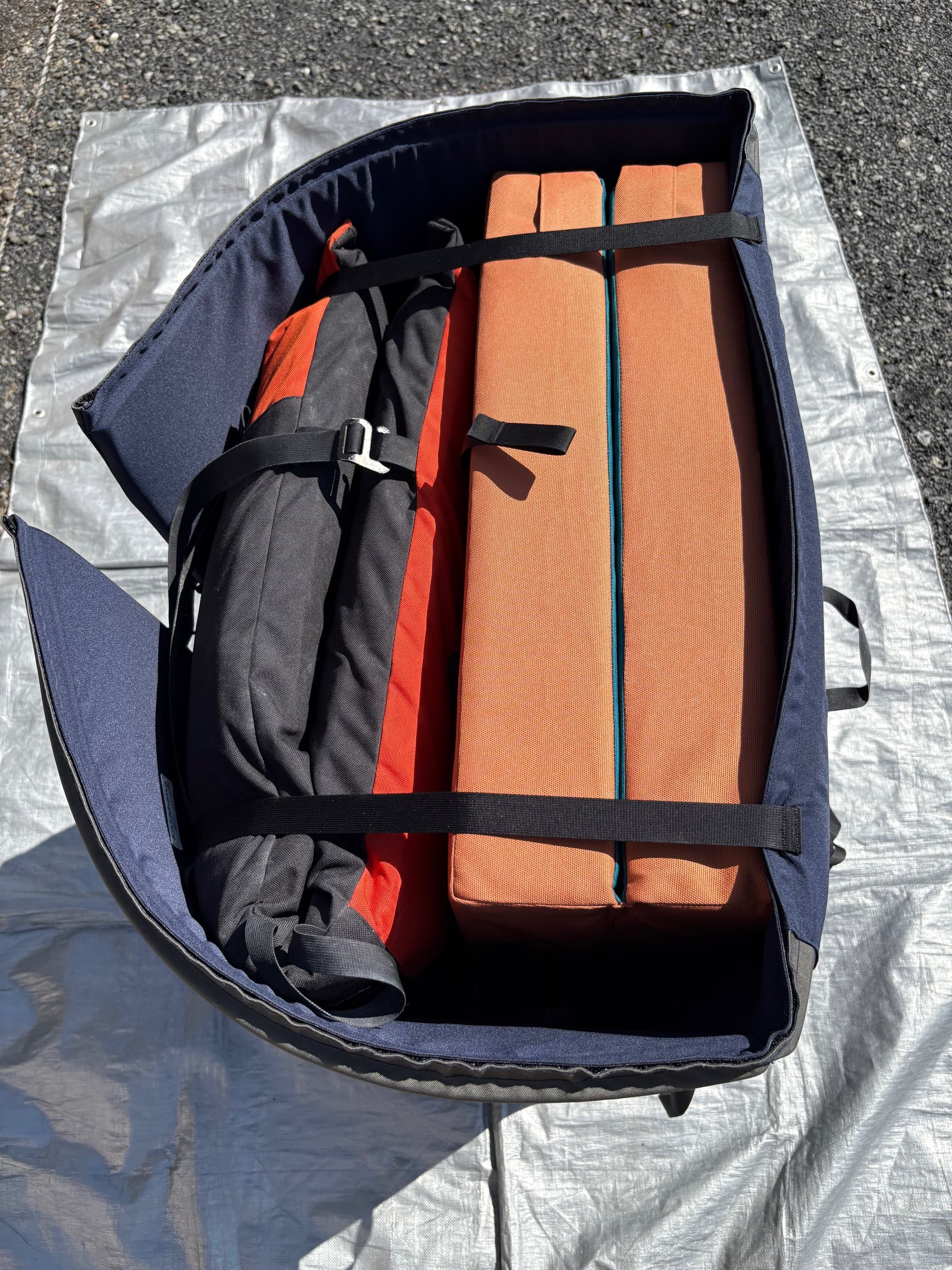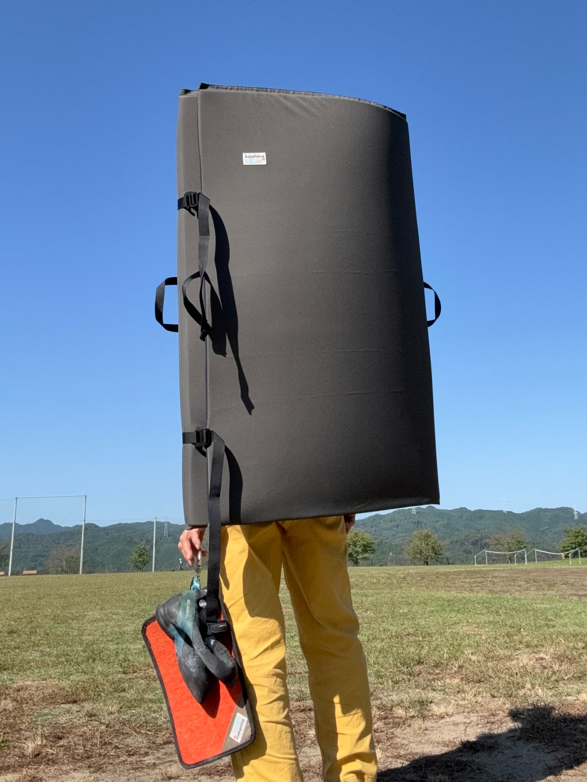 ・折りたたみサイズ — およそ縦102cm × 横70cm × 厚さ(ショルダーハーネス含まず)6.5cm