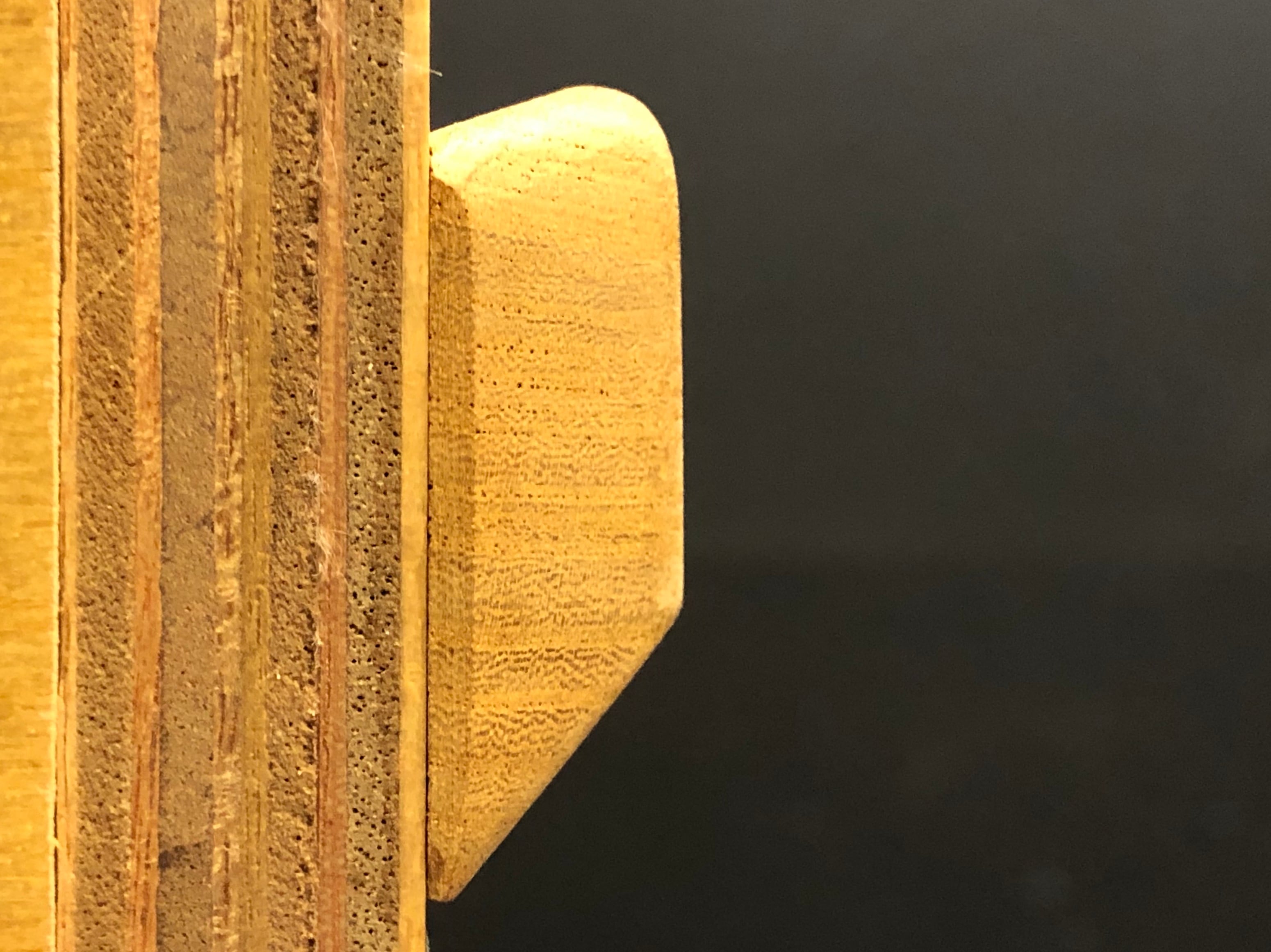 Fragment is a short rung with a total length of 15 cm with a contact head design that is ideal for 110 degrees baseboards (typical campus board angles). Unlike general campus bars (commercially available products have a length of about 40 cm to 52 cm), the short rung has a high degree of freedom in terms of installation environment, such as installation in a limited space and support for any training. In addition, this product has a size that allows "matching" to hold a piece with both hands, which greatly improves the variation of training. It is also effective as a conditioning plate that can be hung comfortably on a 90 degrees base board. The material used is traditional Japanese furniture, "Keyaki", a high-class Japanese material that is also used for the body of Japanese drums, and is carefully manufactured at the furniture workshop "TOKU Workshop" in Ome city Tokyo(west country side).