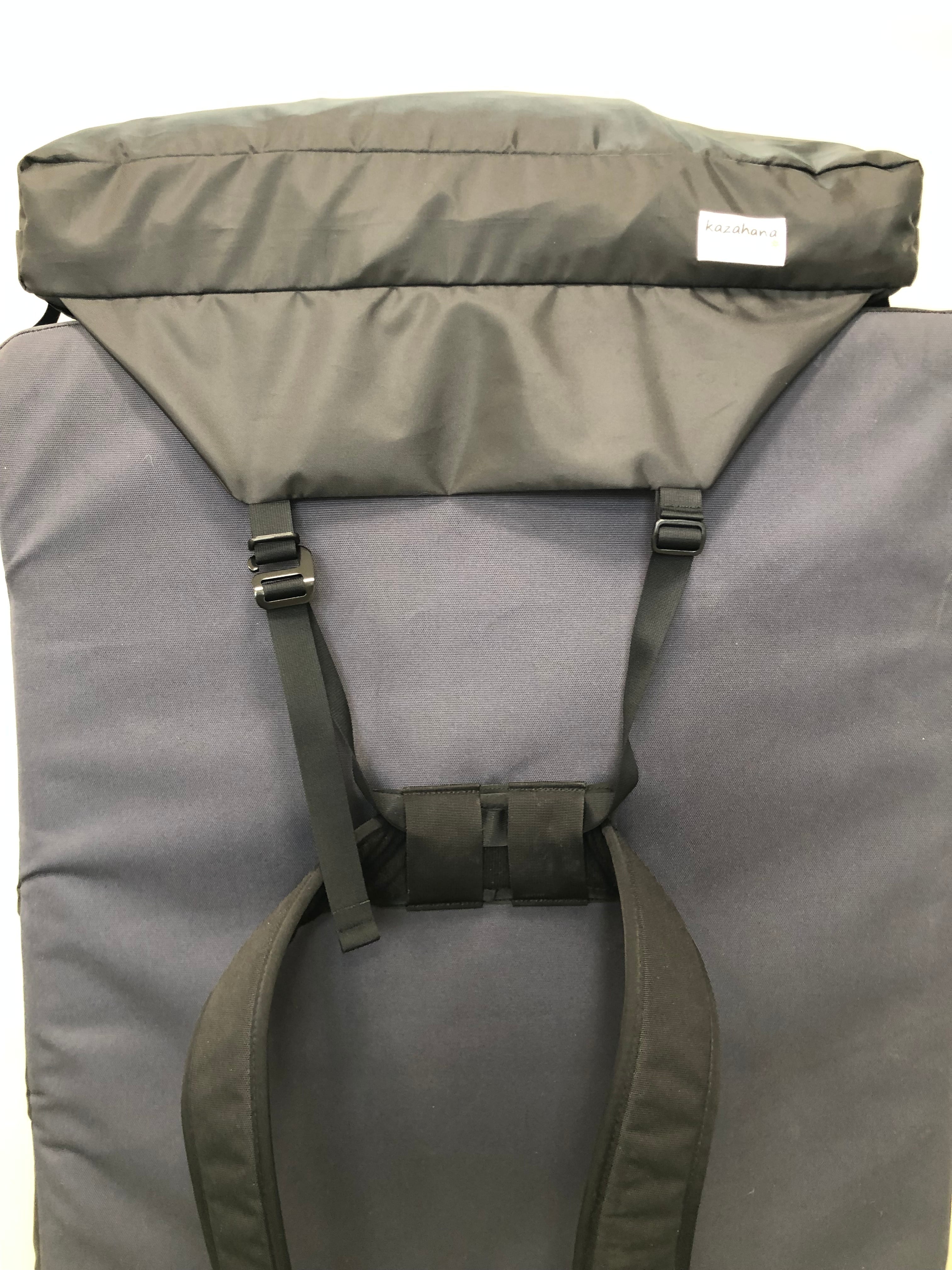 大小の岩石を乗り越えつつ進む河原や海岸、急な斜面を含む山道アプローチでは、ボルダリングパッドを背負いつつも両の手がフリーであれば遥かに楽に進むことが出来るのは言うまでもありません。kazahana "スタックバッグSC " はボルダリングパッド上面の空白スペースを利用して取付けるパッド専用のギアバッグ "スタックバッグ" のアップデートモデルです。20mmコンプレッションベルト + ハンドル、底部フォームを追加してハンドリングを向上させました。取付は、先ず背面のショルダーハーネス取付スロット、またはショルダーグラブハンドルに後面ベルトを通してから(画像4番目)フッキングし、次に前面ベルト(長い方)でパッドを外周させてフッキングする(画像6番目)2アクションです。ショルダーハーネス取付スロット、またショルダーグラブハンドルの無いボルダリングパッドへはオプション品の "ラウンドベルト" を使用すれば取付が可能です(画像13番目)。